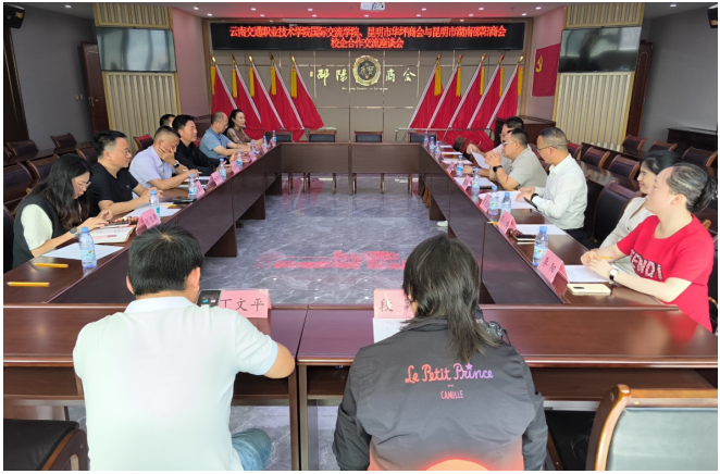 2025年9月10日上午,云南交通职业学院国际交流学院、昆明市华坪商会到访昆明市湖南邵阳商会,共同召开了校企合作交流座谈会。围绕“做实校企对接、深化三方协作、赋能社会发展”的主题,进行了深入的交流。