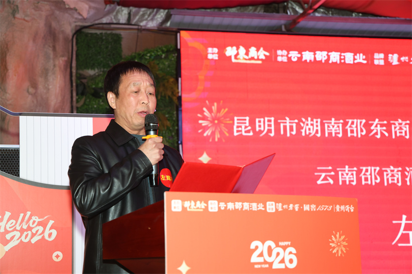2025年12月27日,昆明市湖南邵东商会“活力邵商贺新岁·砥砺前行共腾飞”迎2026元旦团建活动隆重举办。我会执行会长蒋立君率队,监事长张小银,常务副会长罗胜聪、匡清平,副会长朱锐峰以及办公室主任蔡珍等代表,受邀参加了此次活动,与昆明市湖南邵东商会近三百名会员家人齐聚一堂,共赴冬日之约,共话团圆情谊。