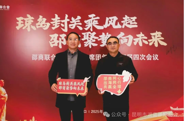椰风送暖,南海之滨群贤毕至。2025年12月25日至27日,由湖南省驻海南办事处指导、邵商联合会主办的“2025年主席团年会暨四届四次会议”,在海口威斯汀酒店隆重举行。昆明市湖南邵阳商会执行会长陈志龙、秘书长周迎春率受邀参加,与近300名全球邵商代表及各界嘉宾共襄盛举,围绕“琼岛封关乘风起·邵商聚势向未来”主题,紧扣国家战略纵深推进的时代脉搏,共话海南自贸港全岛封关运作历史机遇,共商全球化布局新战略,为邵商融入国家发展大局凝聚智慧力量。