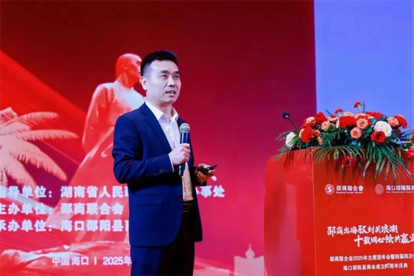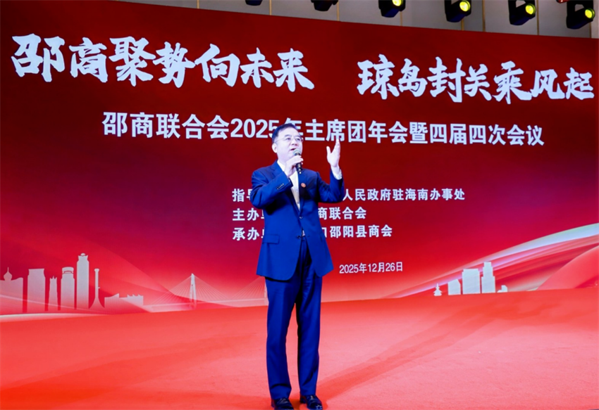 2025年12月26日下午,参会嘉宾受邀出席海口邵阳县商会成立十周年庆典。会上,海口邵阳县商会会长邓奇刚向邵商联合会发出《关于抓住海南封关机遇共建“全球邵商产业园”的倡议》,呼吁整合全球邵商资源,在海南打造“政策叠加、产业协同、资源共享”的跨境实体平台,为邵商全球化布局提供新载体。